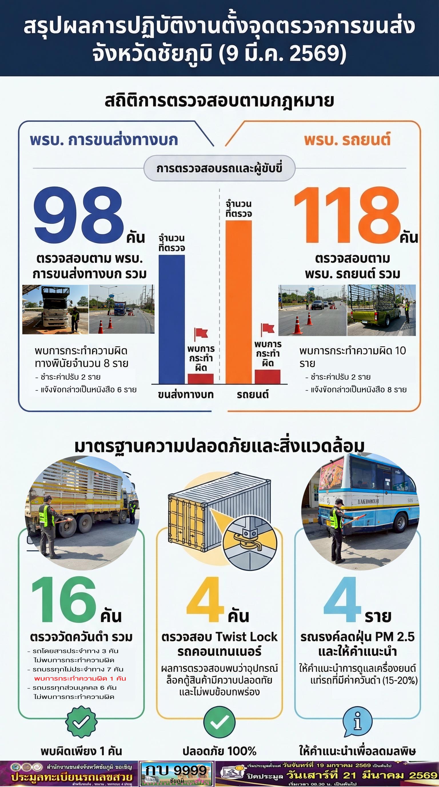 สำนักงานขนส่งจังหวัดชัยภูมิ โดย นายปริญญา หัสดินทร ณ อยุธยา ขนส่งจังหวัดชัยภูมิ ได้มอบหมายให้ผู้ตรวจการตั้งจุดตรวจการขนส่ง