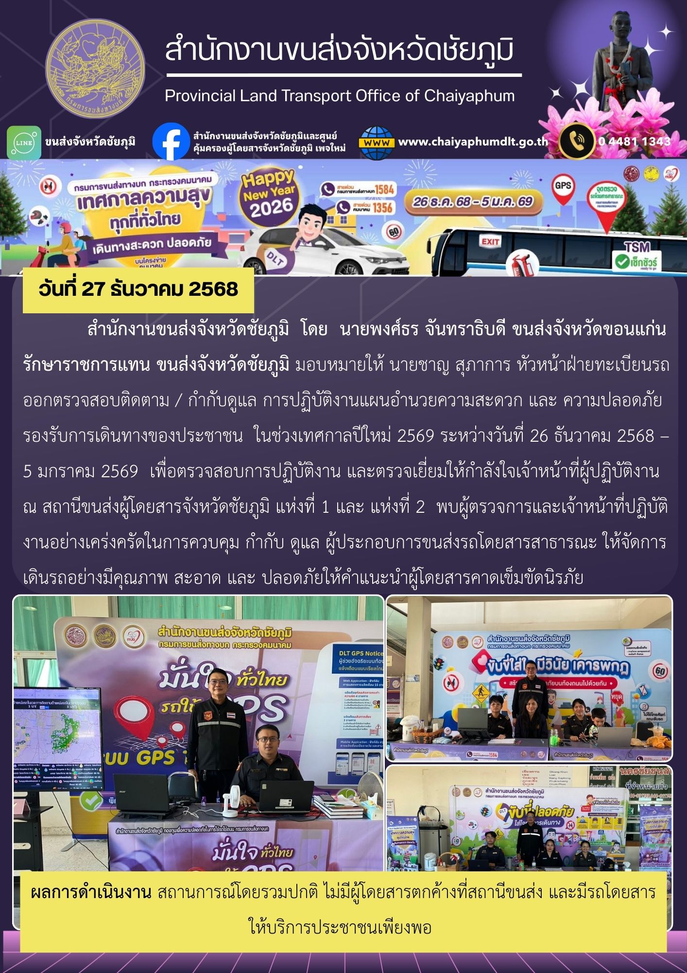 สำนักงานขนส่งจังหวัดชัยภูมิ อำเภอเมือง จังหวัดชัยภูมิ : www.chaiyaphumdlt.go.th