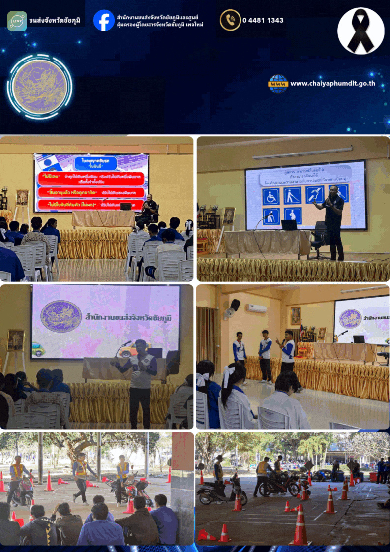 สำนักงานขนส่งจังหวัดชัยภูมิ โดยนายพงศ์ธร จันทราธิบดี ขนส่งจังหวัดขอนแก่น รักษาราชการแทน ขนส่งจังหวัดชัยภูมิ มอบหมายให้เจ้าหน้าที่สำนักงานขนส่งจังหวัดชัยภูมิ จัดกิจกรรมตาม โครงการนักเรียนรุ่นใหม่มีใบขับขี่ ประจำปีงบประมาณ 2569 รุ่นที่ 2 ณ โรงเรียนจัตุรัสวิทยาคาร อำเภอจัตุรัส จังหวัดชัยภูมิ มีนักเรียน เข้าร่วมโครงการฯจำนวน 50 คน