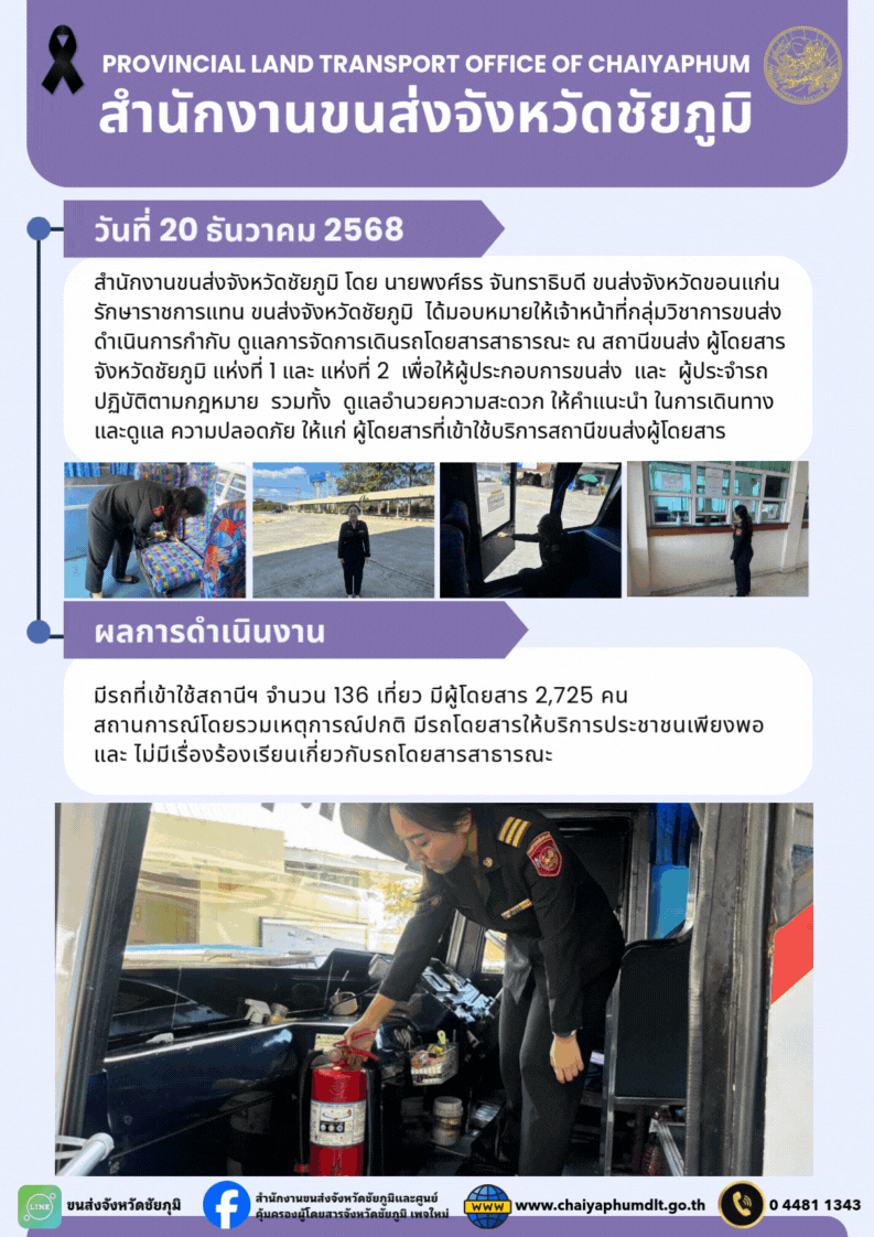 ดำเนินการกำกับ ดูแล การจัดการเดินรถโดยสารสาธารณะ ณ สถานีขนส่งผู้โดยสารจังหวัดชัยภูมิ