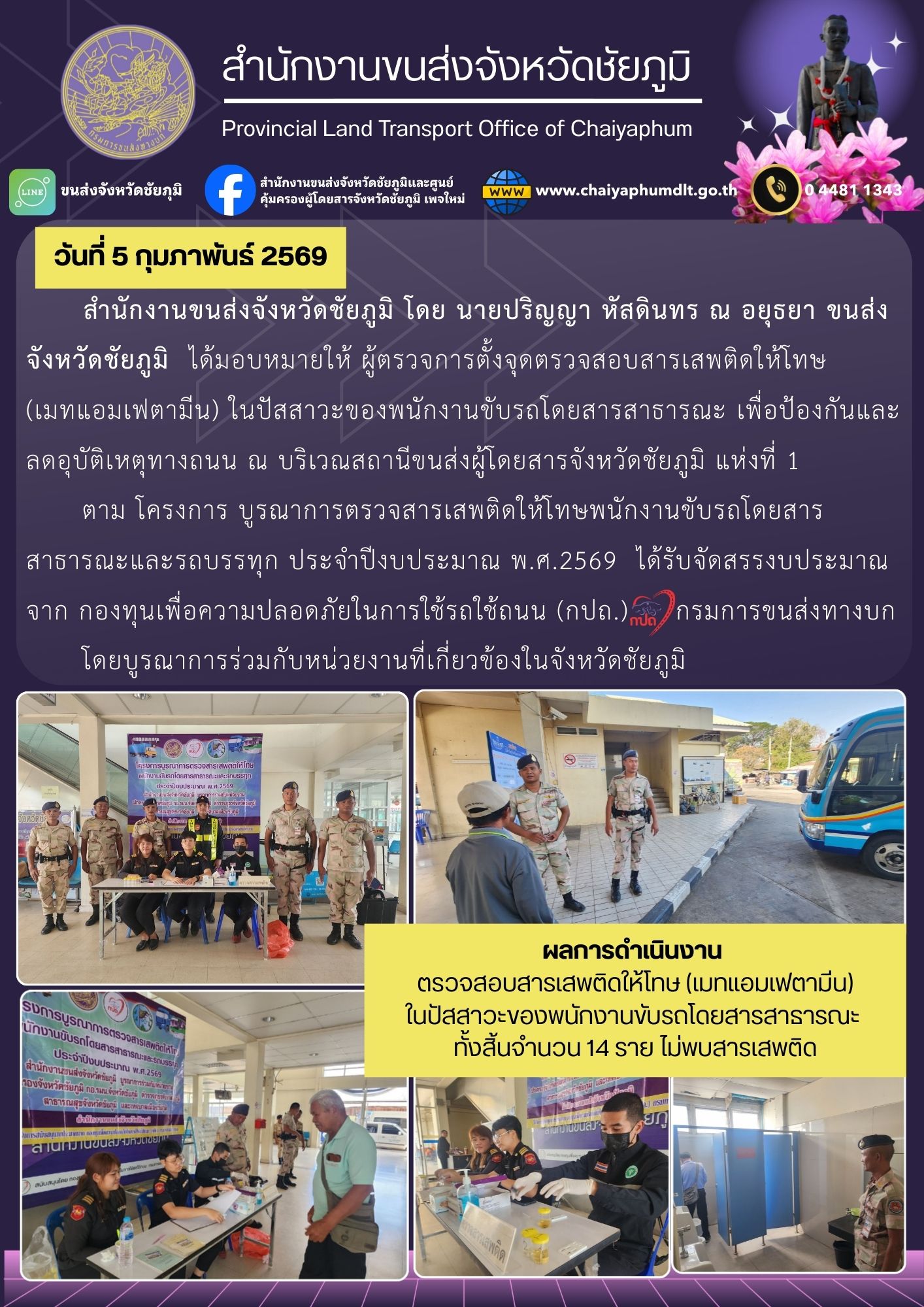 สำนักงานขนส่งจังหวัดชัยภูมิ อำเภอเมือง จังหวัดชัยภูมิ : www.chaiyaphumdlt.go.th