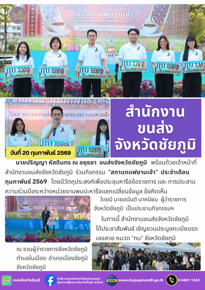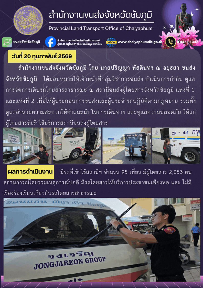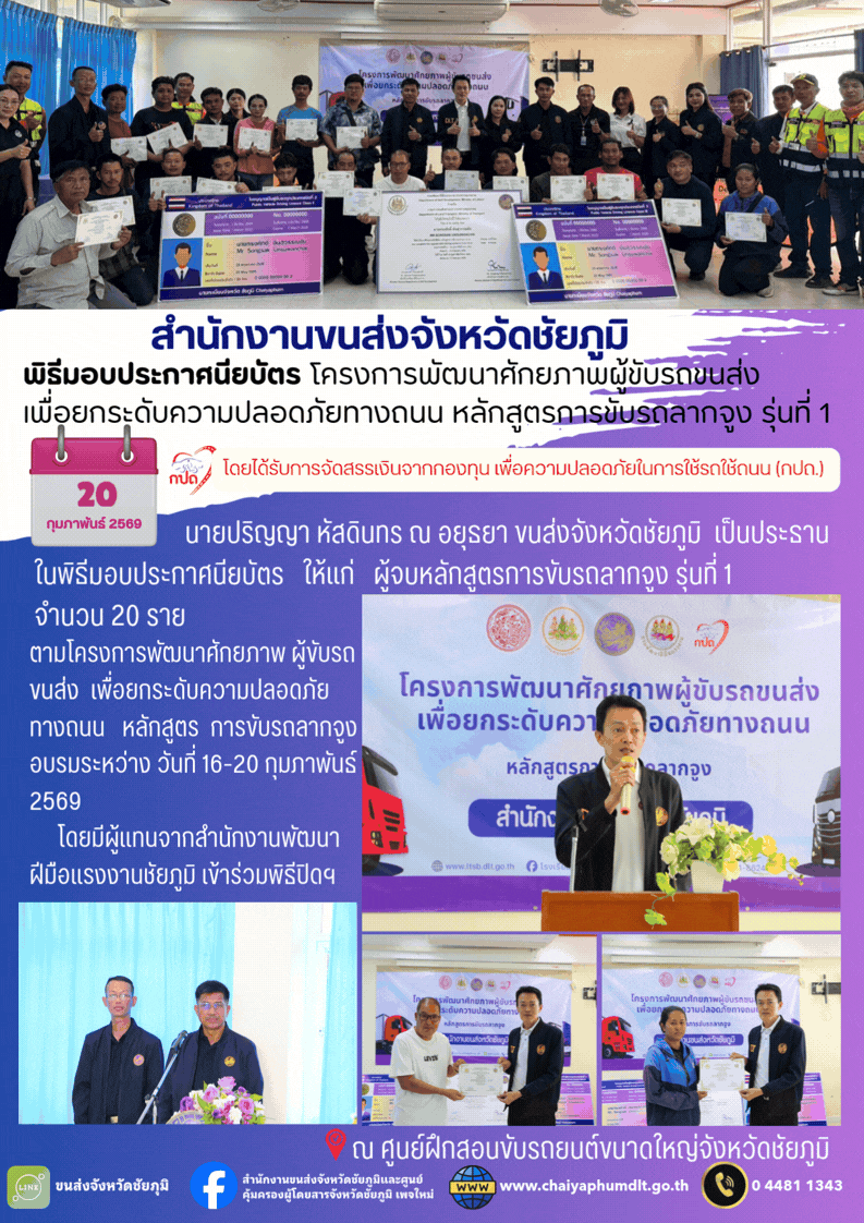 สำนักงานขนส่งจังหวัดชัยภูมิ อำเภอเมือง จังหวัดชัยภูมิ : www.chaiyaphumdlt.go.th