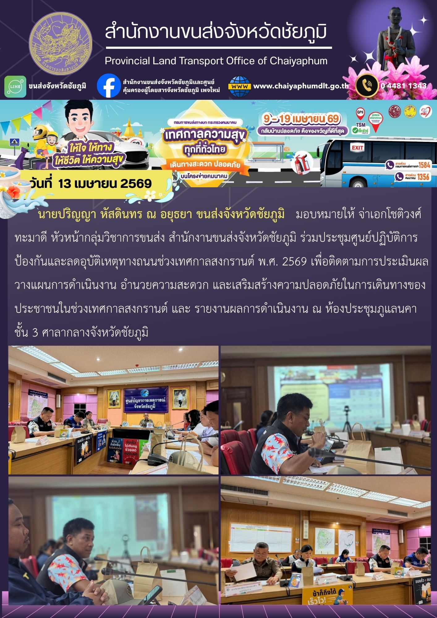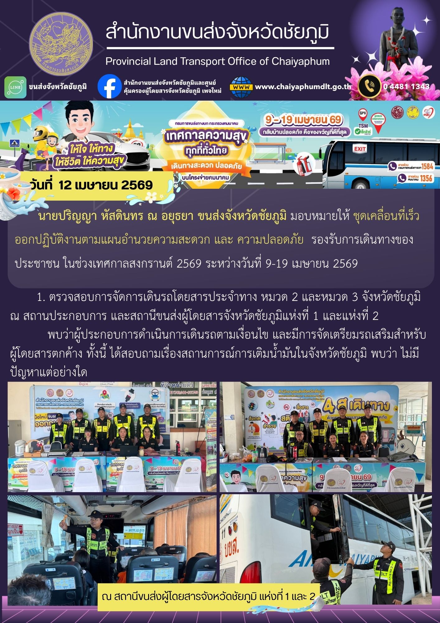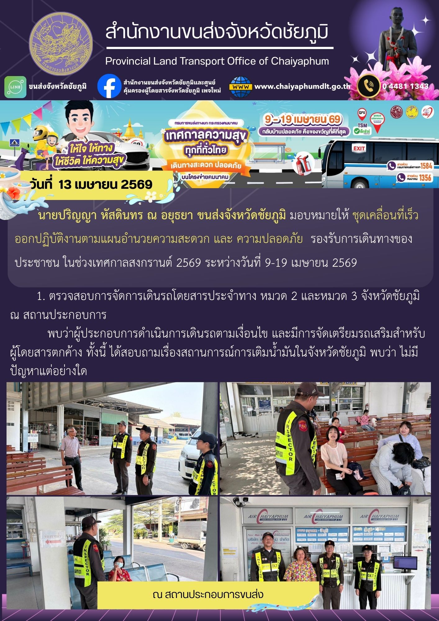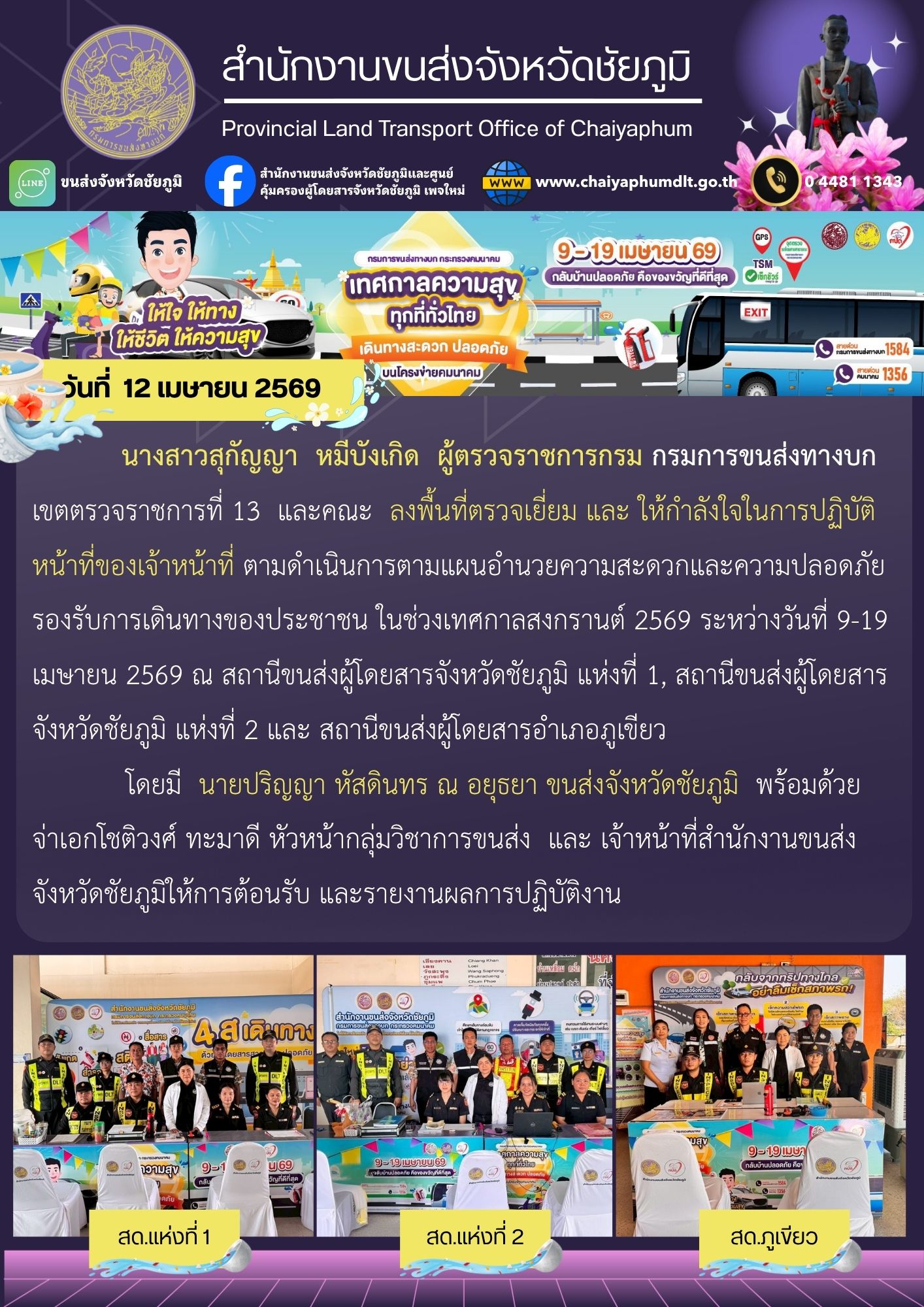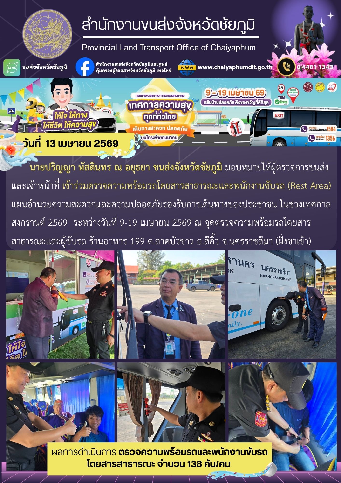 สำนักงานขนส่งจังหวัดชัยภูมิ อำเภอเมือง จังหวัดชัยภูมิ : www.chaiyaphumdlt.go.th