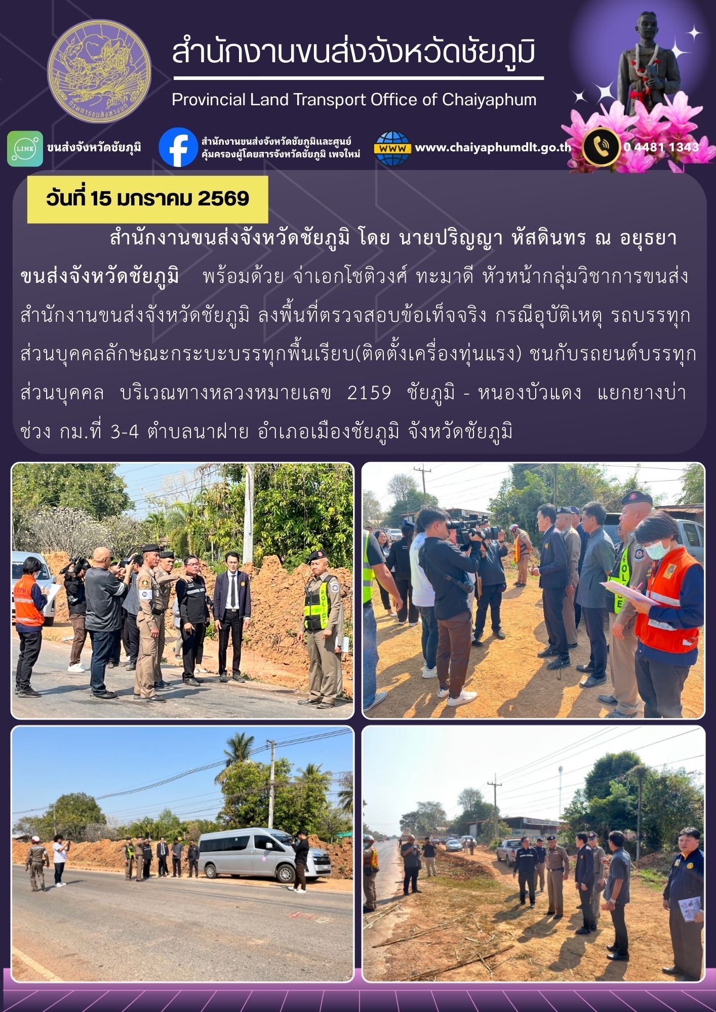 ลงพื้นที่ตรวจสอบข้อเท็จจริง กรณีอุบัติเหตุ