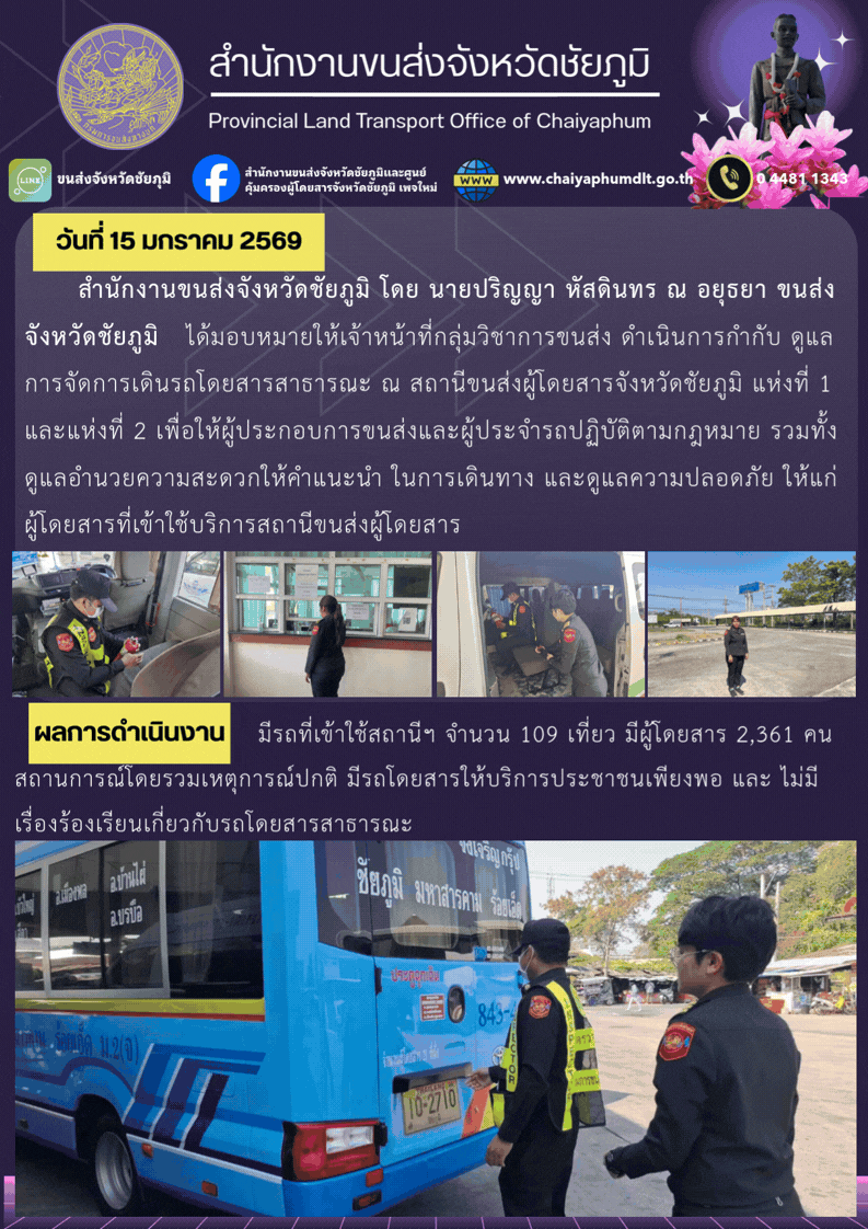 สำนักงานขนส่งจังหวัดชัยภูมิ อำเภอเมือง จังหวัดชัยภูมิ : www.chaiyaphumdlt.go.th