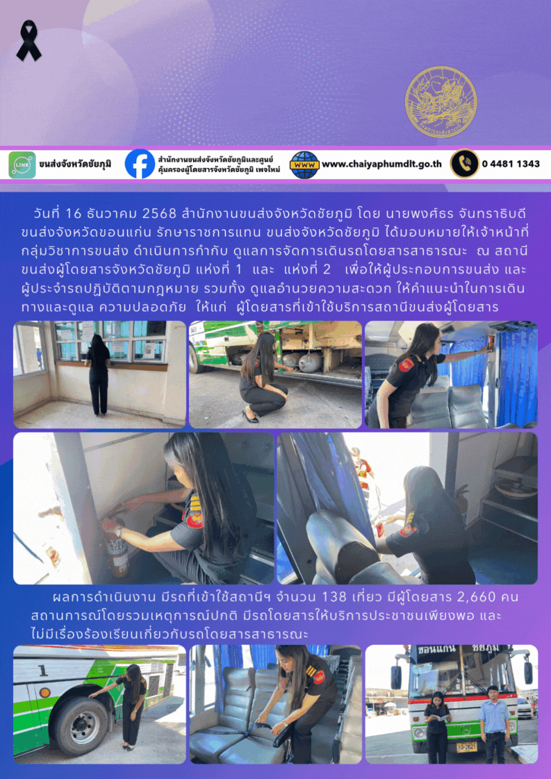 ดำเนินการกำกับ ดูแล การจัดการเดินรถโดยสารสาธารณะ ณ สถานีขนส่งผู้โดยสารจังหวัดชัยภูมิ