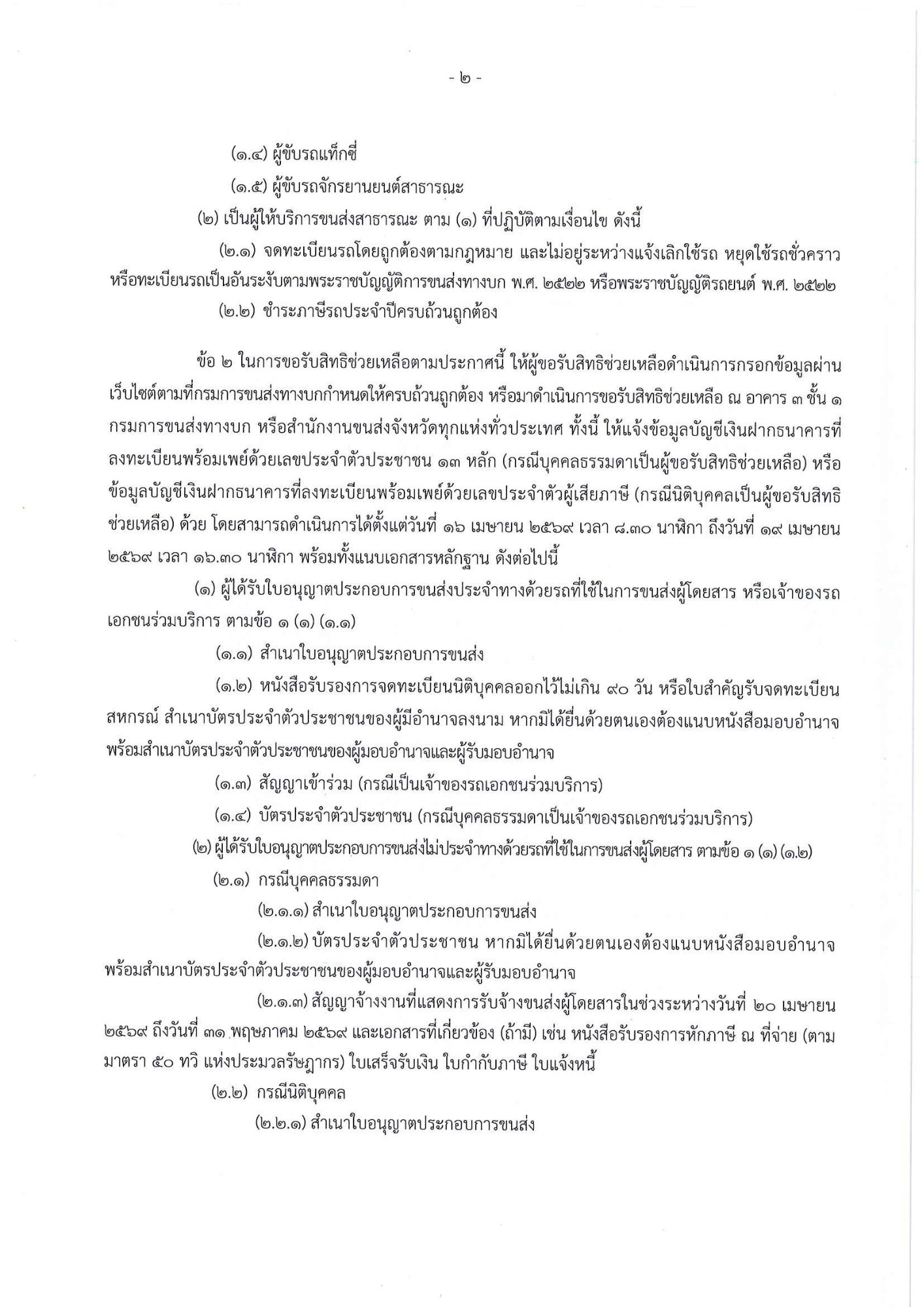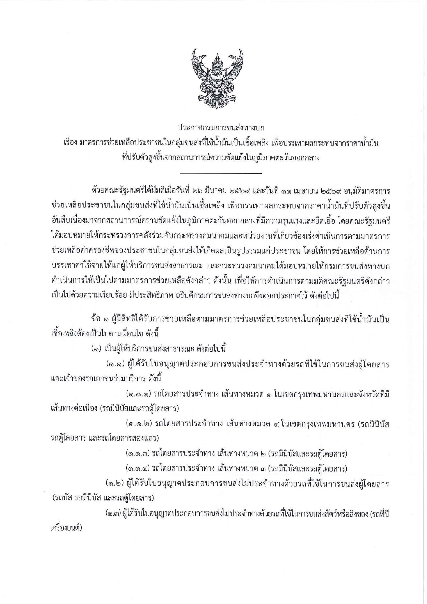 มาตรการช่วยเหลือประชาชนในกลุ่มขนส่งที่ใช้น้ำมันเป็นเชื้อเพลิง เพื่อบรรเทาผลกระทบจากราคาน้ำมันที่ปรับตัวสูงขึ้นจากสถานการณ์ความขัดแย้งในภูมิภาคตะวันออกกลาง