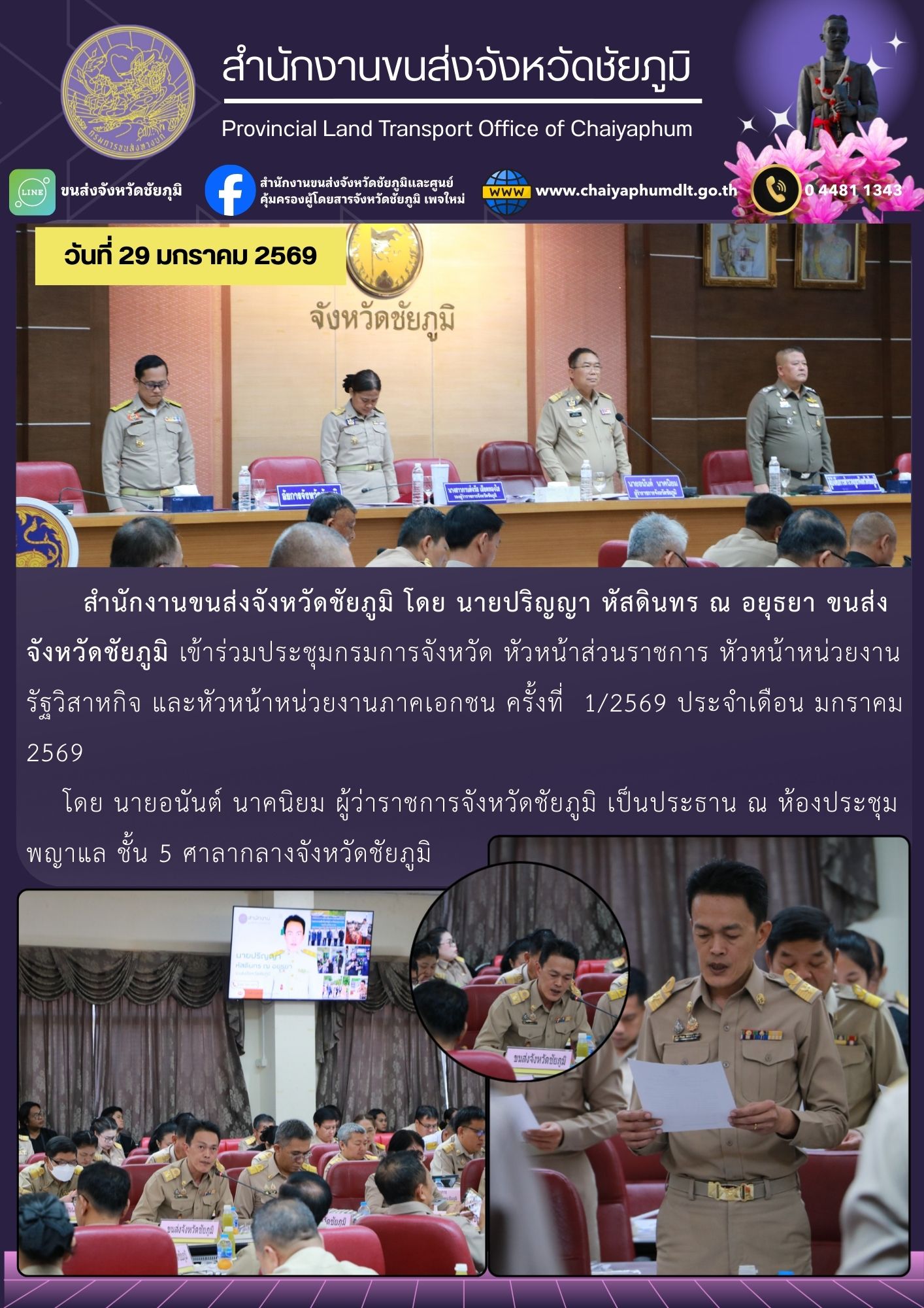 ประชุมสำนักงานขนส่งจังหวัดชัยภูมิ ประจำเดือน มกราคม 2569