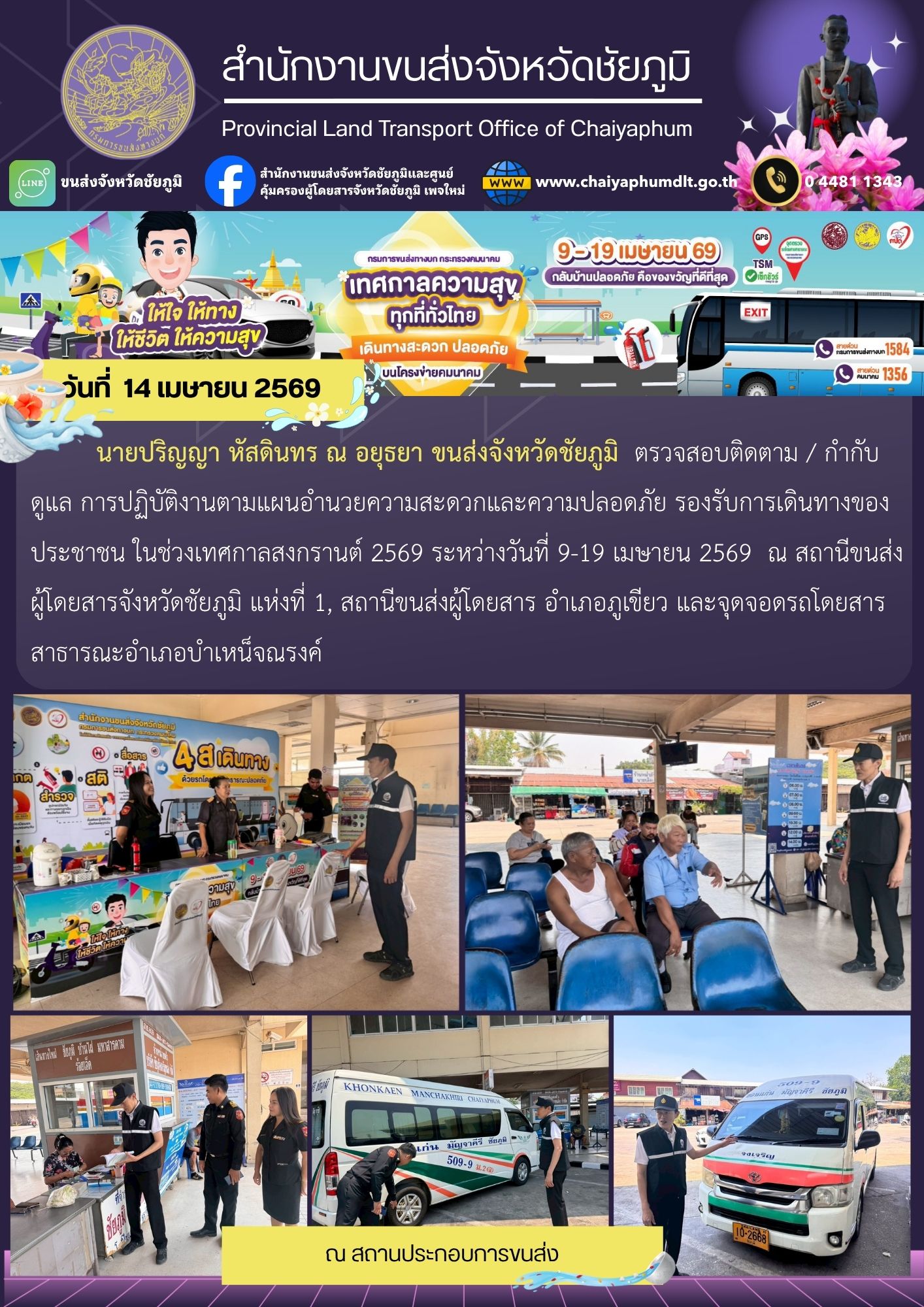 ตรวจสอบติดตาม / กำกับดูแลการปฏิบัติงาน ตามแผนอำนวยความสะดวกและความปลอดภัย รองรับการเดินทางของประชาชน...