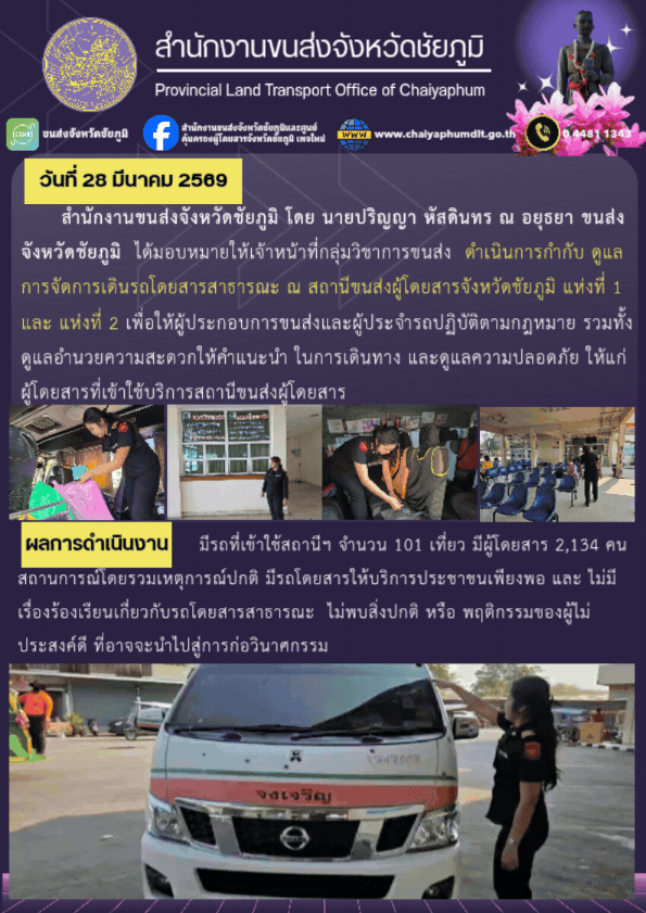สำนักงานขนส่งจังหวัดชัยภูมิ อำเภอเมือง จังหวัดชัยภูมิ : www.chaiyaphumdlt.go.th