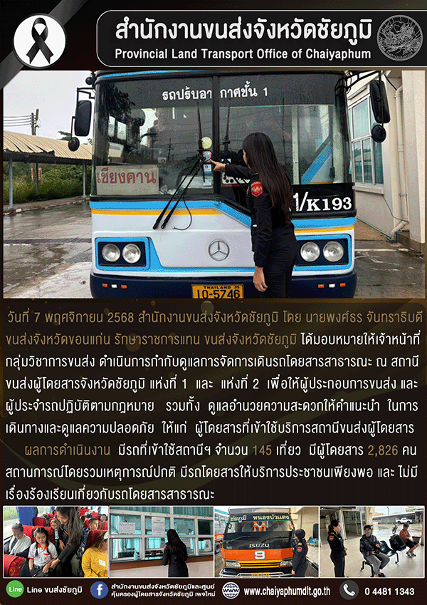 ดำเนินการกำกับ ดูแล การจัดการเดินรถโดยสารสาธารณะ ณ สถานีขนส่งผู้โดยสารจังหวัดชัยภูมิ