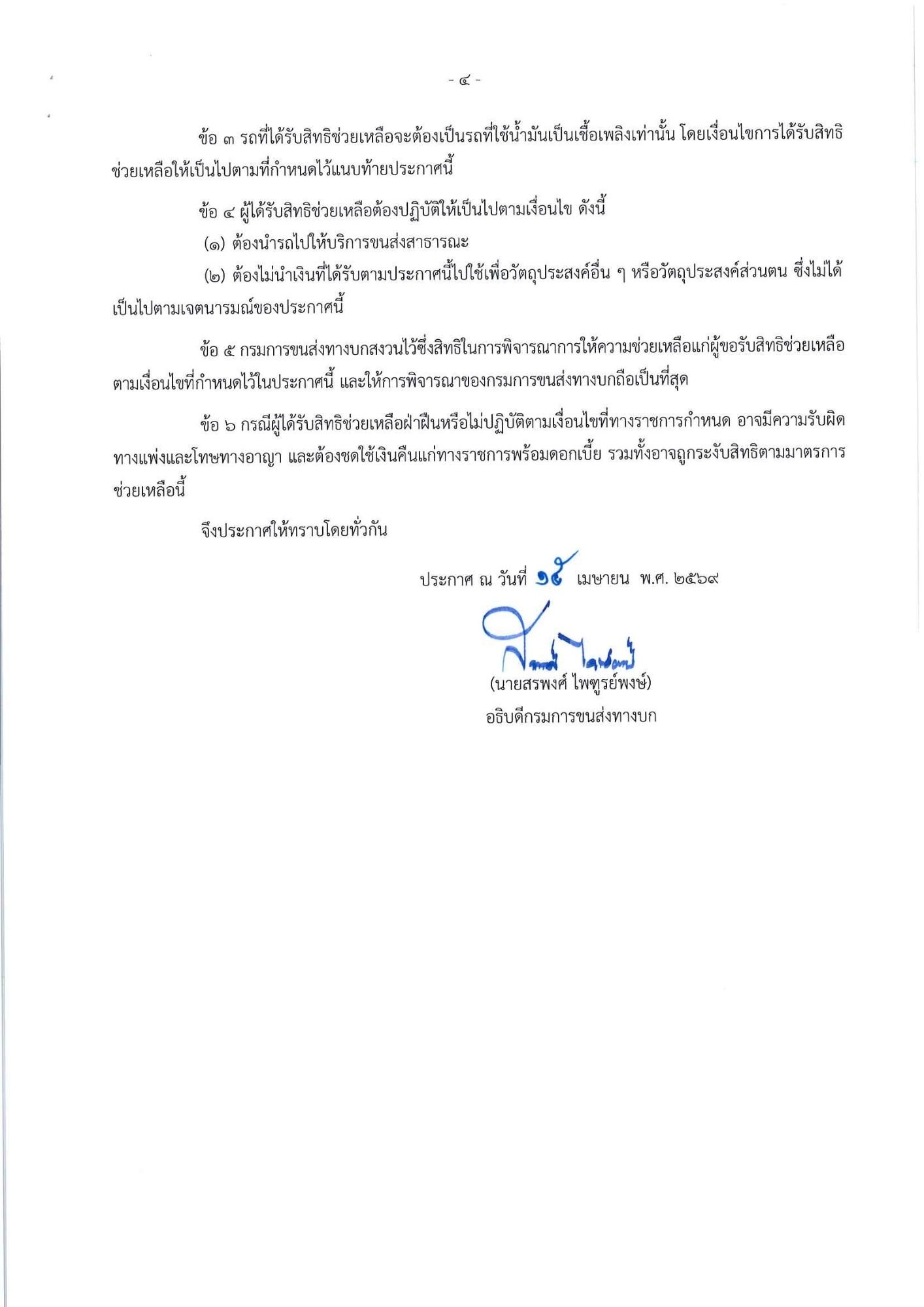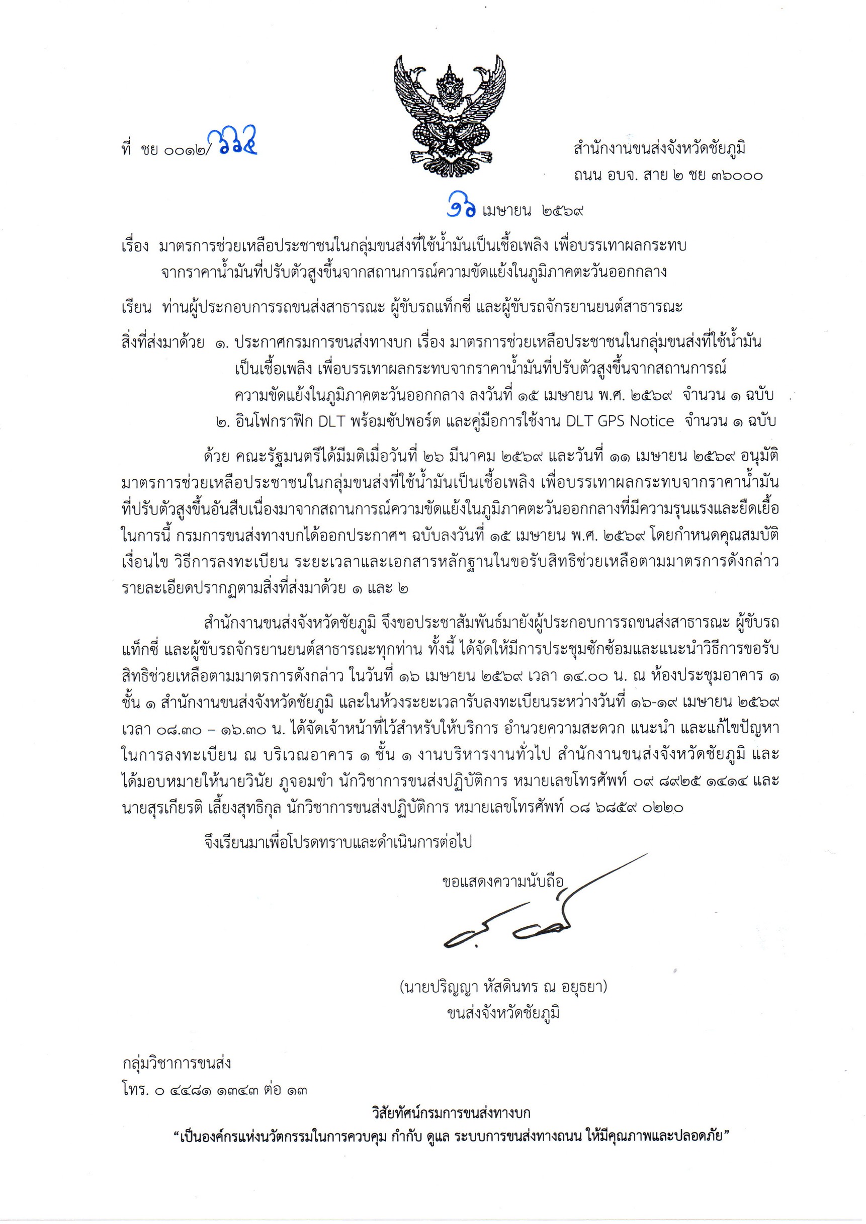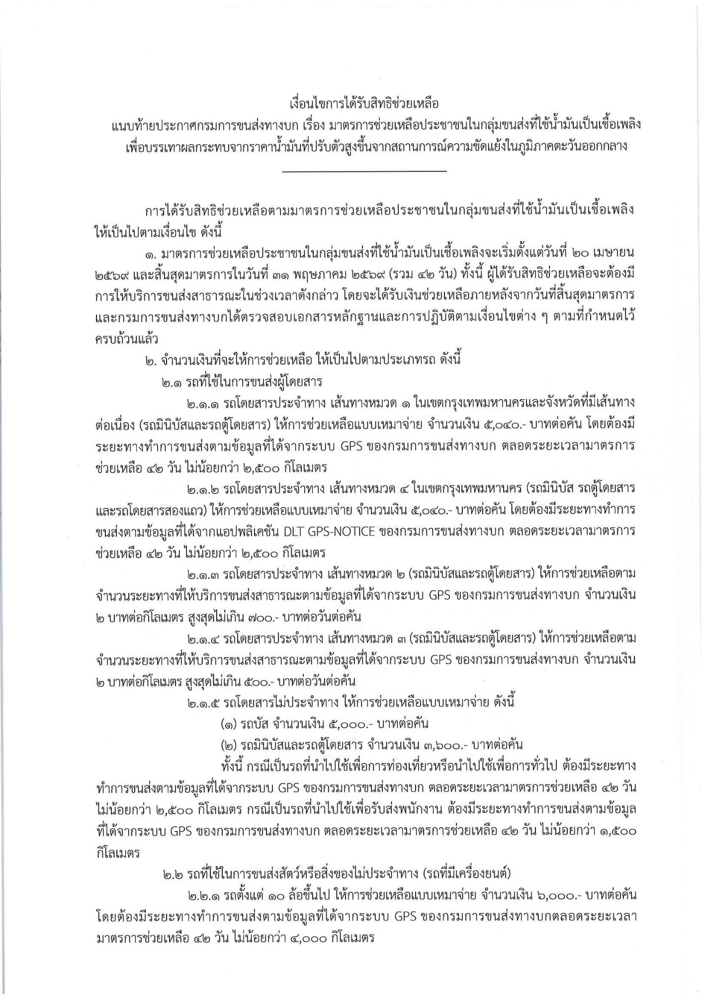 มาตรการช่วยเหลือประชาชนในกลุ่มขนส่งที่ใช้น้ำมันเป็นเชื้อเพลิง เพื่อบรรเทาผลกระทบจากราคาน้ำมันที่ปรับตัวสูงขึ้นจากสถานการณ์ความขัดแย้งในภูมิภาคตะวันออกกลาง